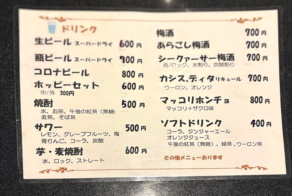 遅い時間になるとカラオケ(無料!!)を歌う人もチラホラと出てきて、一気に賑やかになります。このお店の女性スタッフやオーナーも出勤してきて深い夜の始まりです。午前2時、3時を過ぎたあたりから近くの居酒屋やスナック等のスタッフやママさん達が訪れて大盛り上がりになる事が多いです。